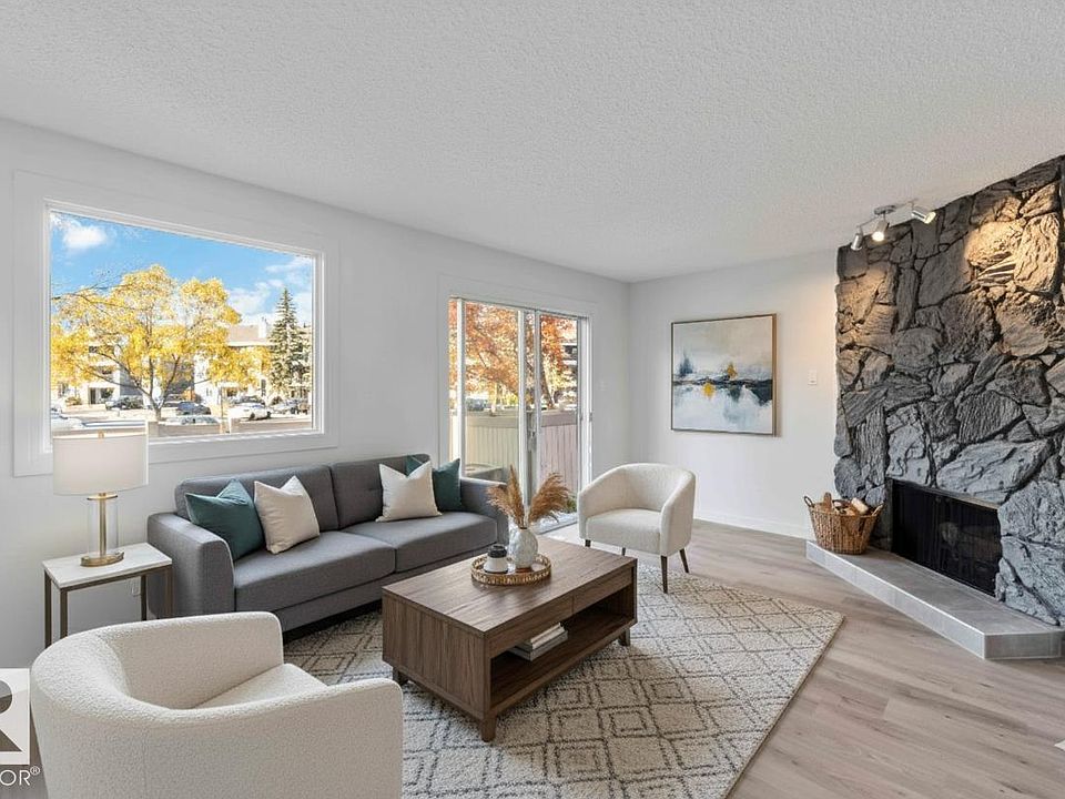Welcome to Pioneer Estates! This stunning, fully renovated 3-bedroom townhome offers an exceptional, opportunity in a prime location near schools, bus stops, walking trails, shopping, the River Valley, and Hermitage Park.The main floor features all-new, durable vinyl flooring, leading you into a brand new kitchen complete with elegant quartz countertops. Both the main floor 2-piece and the upstairs 4-piece bathroom have been completely renovated with modern fixtures, finishes, and beautiful, elegant tiling in the upstairs bathroom. Enjoy year-round comfort with the addition of central AC. Comfort continues upstairs with brand new carpet in all three spacious bedrooms, ensuring warmth and quiet. The fully finished basement offers a versatile family room, a convenient laundry area, plenty of storage, plus a separate flex room perfect for a home office. Located in a well-managed, pet-friendly complex, one assigned parking stall is included, with the option to rent a second. Some picture are Virtually stage
