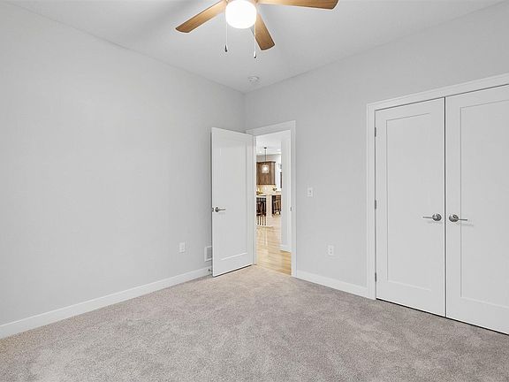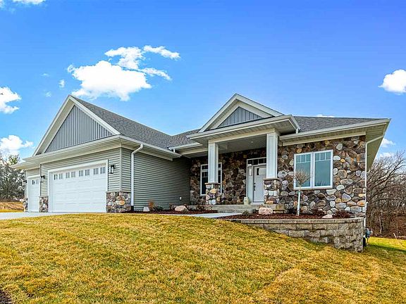 There is over 3000 square feet to love in Eagle Bend! Great features throughout including designer selected finishes, heated floors in primary bath, maintenance-free decking and rail, premium countertops, custom fireplace built-ins, whole house humidifier dual zone climate control, wifi thermostats and 4-inch furnace filter, MyQ 360 degree cameras in garage with wifi capability and garage doors that work even when the power is out, the garage is pre-wired for a charging port and insulation above the garage. This Navigate home has an open floor plan between the kitchen (with a hidden walk-in pantry!), dining room, and great room (with a gas fireplace and built-in cabinets) for easy entertaining. From the great room you can go into the sun room, to the deck, and even take the stairs down to the yard. The Primary has a private double vanity and a generous walk in closet. The main is finished with an office, 1 bedroom, 1 bathroom, and the mud room. Lower level has 2 bedrooms, 1 bathroom, plenty of storage, and a massive rec room with a wet bar and access to the patio out back. **Navigate is offering a $15,000 credit for all closings completed by May 31, 2023***