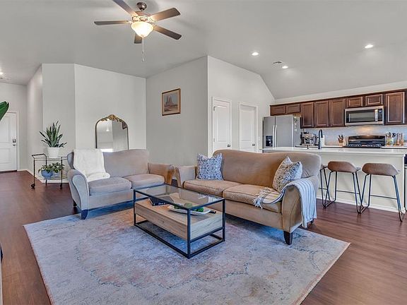 This move in ready ranch is located in a family-friendly neighborhood, conveniently located near I-35 in the quiet Subdivision of Cottonwood within Edmond school district. Over 1500 sq ft of open living space with 3 bedrooms - 2 bathrooms and attached 2 car garage. Primary bedroom is located on far corner of home offering extra privacy to enjoy primary bath ensuite with oversized closet. Kitchen has a lovely oversized island that seats up to 5 for extra seating along with a large pantry. Owner had a 650 square foot patio installed to enjoy outdoor living along with a wood privacy fence. Home sits on a spacious property of over half an acre.