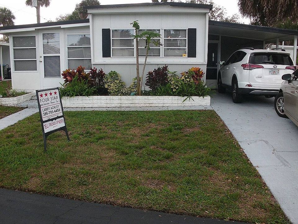 Neat and clean 1 bedroom 1 bath home. Another bedroom could be added in the Florida room. Recent gray vinyl laminate flooring throughout the main home. Foof over, washer and dryer in shed. Central air in Florida room. Westside screen room. The home is located near the pool. This home is move-in ready and located in a 5-Star park. Amenities include an active clubhouse and 2 pools. Close to shopping, medical facilities, and entertainment. Call today to see this lovely home.