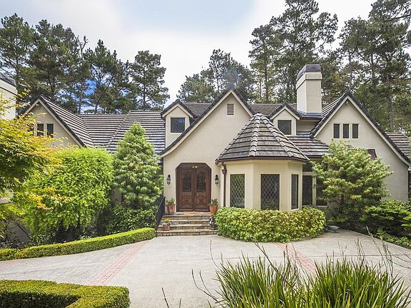 This private, English Country-inspired estate has forest & garden views, & an inviting interior, in beautiful condition. Four large bedrooms, including 2 ground floor master suites, an office or 5th bedroom with 4 full plus 2 half baths & an oversized rec/gaming/entertainment room. Excellent storage, a 3 car garage, & generator with total house power capacity. Private, spacious location, in close proximity to Robert Louis Stevenson School, Carmel River School District & close to golf & walking trails.