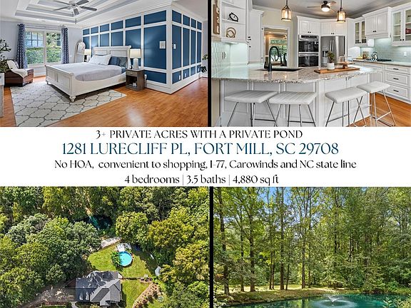 A rare Fort Mill find: this home sits on three wooded acres with a private pond and the freedom of no HOA, all just minutes from everywhere you want to be.