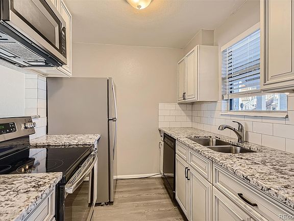 You found your new home...Stunning remodeled 2 bedroom condo, with all new paint, laminate floors, granite counters and more!! Don't miss this one. The unit is set at the end of the community and backs to an open area. Fabulous 2nd floor location with a balcony to enjoy over the green common area. Natural light flows throughout the living spaces and bedrooms. The bathroom has all new tile and is styled with a fresh contemporary feel. A convenient stacked washer dryer is right where you need it. Tons of parking means you don't have to worry if you have guests. Minutes from everything in Castle Rock, Shopping, dining, out door recreation. Conveient to I25 north or south.