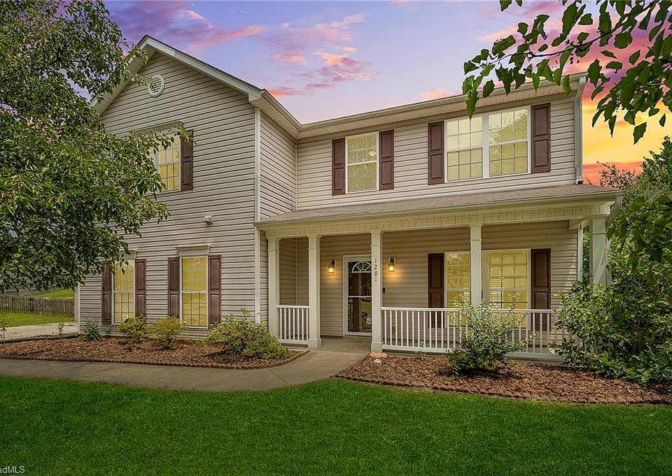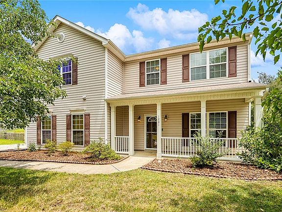 Located on a large corner lot in the beautiful Hampton Park neighborhood, this cul-de-sac home is looking for its second owner! The main floor includes a kitchen complete with an island & pantry space, attached breakfast area with patio access, entry from the side-loading 2-car garage, two separate living areas, some fresh paint, & gas fireplace. Upstairs includes recently replaced carpet, four spacious bedrooms with large closets, & a prominent laundry-room. The primary bedroom boasts beautiful tray ceilings & ensuite bathroom complete with a garden soaking tub & separate shower. Outside you’ll find 2 gardening spaces, a storage shed, & a privately fenced area off the patio perfect for an above-ground pool or hot tub! Updates include a ring doorbell & wiring for a surround sound system in the kitchen. The fridge, washer, dryer, & garage freezer will all stay with the house & a 1-year home warranty is offered! Tour: https://unbranded.youriguide.com/1281_silverstone_ct_high_point_nc/