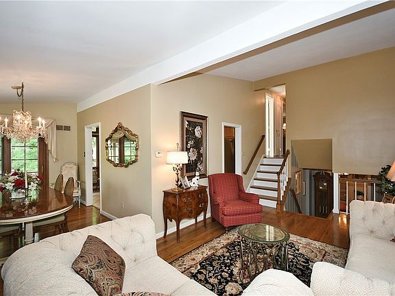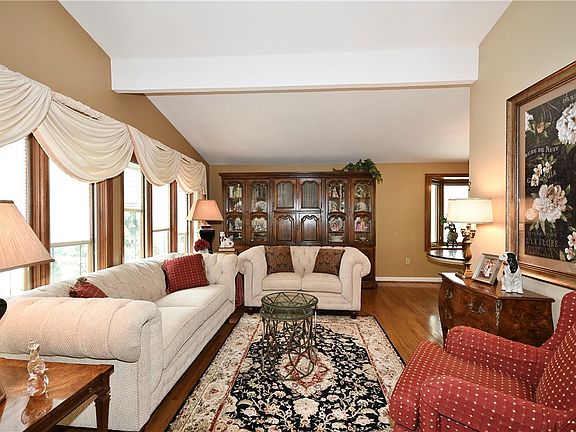 Character and style! This home has been lovingly cared for by same owner for over 50 years and updated along the way. Gas fireplace in family room, and a wet bar and wood burning stove in the family room. Main level features living, dining, and eat-in kitchen with hardwood and tile flooring and vaulted ceilings throughout. Kitchen is nicely updated with granite counters and stainless appliances and large windows leading out to a deck overlooking the backyard. The primary suite is on the upper level with an updated bath with granite tops, dual vanities, large tub, and walk-in shower. Many closets in the primary suite. The 4th bedroom is captive in the primary suite and could be used for an office, nursery, or as a dressing room. Deck and backyard have a country club feel - the game room provides access to the outdoor area as well. Irrigation system in yard, shed, pond, and recently added leaf guards to gutters. Lots of updates in this home.