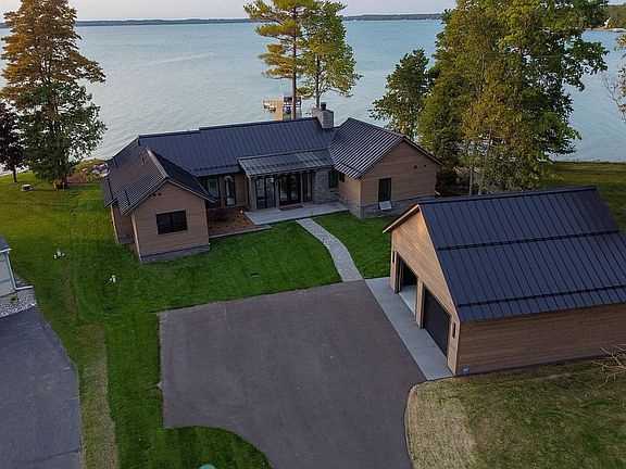Flaming sunsets radiate over this gorgeous site with 120' on Mullett Lake. This three bedroom, three 1/2 bath home is stunning! Open concept main room with a scullery off the chef's kitchen. Wolf and Sub Zero appliances with a drawer microwave, ice machine and beverage cooler. Large main bathroom with sauna shower and heated floors in the bathroom and adjoining walk-in closest. Laundry room with utility sink and mechanical closest with tankless water heater and whole house water filtration system. Two beautiful guest bedrooms with full bathrooms. Large outdoor patio with adjacent Solo stove smokeless fire pit. Patio off the main bedroom as well. Immaculate, climate-controlled crawl space that can be used for storage. Large closets and attic space in house and 2 1/2 car garage.