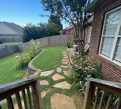 Precious one-story, all brick home conveniently located in Auburn. Notice the updates throughout and the great floor plan. Walk in to the light-filled foyer that opens up to the Great Room which has a wood burning fireplace, hardwood floors and a vaulted ceiling. The open concept dining room leads to the well appointed kitchen and breakfast area. The kitchen has plenty of counter and cabinet space and a pantry. 2 secondary bedrooms are located off front hallway and share a remodeled full bathroom. The primary bedroom suite is spacious and has a tray ceiling. The ensuite has been recently updated with fresh finishes and includes a separate glass enclosed shower, soaking tub, double vanity and large water closet with tons of storage. Home also includes a separate laundry room and double car garage with built-in storage cabinets. Large beautifully landscaped terraced backyard with deck and rock patio area. Neighborhood pool access included in association.