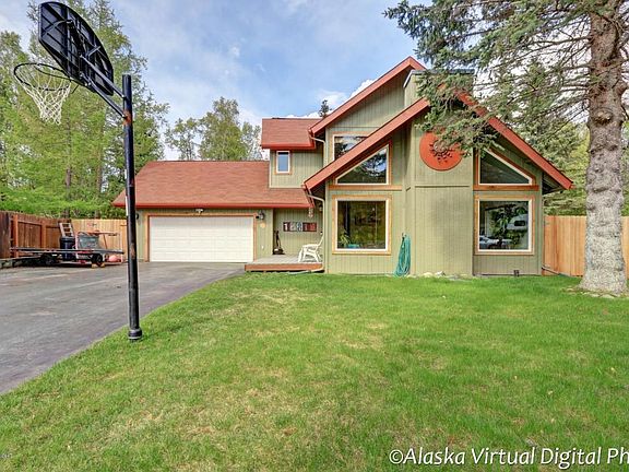 Stunning South Anchorage home, not a single room has been untouched. This home has vaulted ceilings in the living space with exposed wood beams and a rock fire place that goes from the floor to the ceiling, perfect Alaskan touch on this beautifully renovated home. Kitchen features white cabinetry, top of the line stainless steel appliances and a large center island for family gatherings.