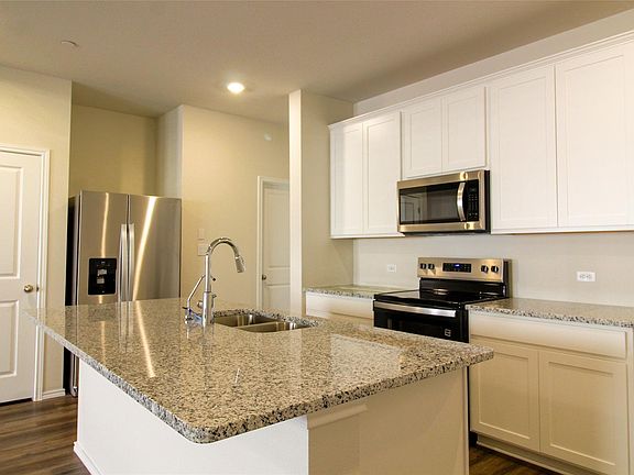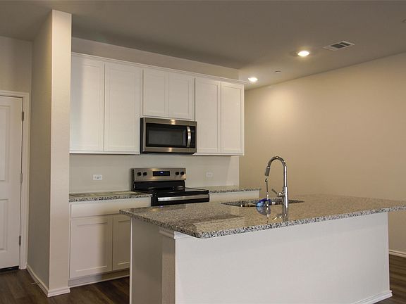 Located at 12810 Siena Village LN, Buda, TX 78610, this condominium in Hays County presents an attractive property in great condition. The kitchen is designed for both culinary creation and social connection, featuring a large kitchen island that invites casual dining and conversation, while the stone countertops and shaker cabinets offer a blend of elegance and functionality. Imagine preparing meals with ease and style, surrounded by a space that is both beautiful and practical. Within the bathroom, the double vanity offers a personal space for morning routines, and the tiled walk in shower provides a spa-like experience. This condominium includes a laundry room, offering convenience and organization, and an open floor plan, creating a spacious and airy atmosphere for living and entertaining. With the inclusion of two garage spaces, parking is both secure and readily available. This 2025 condominium offers a blend of modern living and desirable features.