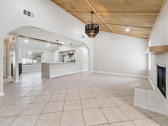 Beautifully updated and move-in ready, this home offers a unique and versatile floor plan with 3 bedrooms, 2 full baths, plus a fourth room that can serve as a bedroom, office, or flex space. Enjoy the open-concept with high ceilings, stunning natural wood accents, an extra-large family room with pool access, and plenty of space for entertaining! The huge kitchen features striking granite countertops with a waterfall edge, modern backsplash, a designated coffee bar or buffet style serving area and seamless flow into the living area. The primary suite boasts a spacious walk-in closet and a fully remodeled ensuite bath. Step outside to your sparkling pool, perfect for relaxing or hosting gatherings. With a brand-new roof and thoughtful updates throughout, this home combines comfort, function, and style. Conveniently located with easy access to Sam Houston Toll and HWY 90.