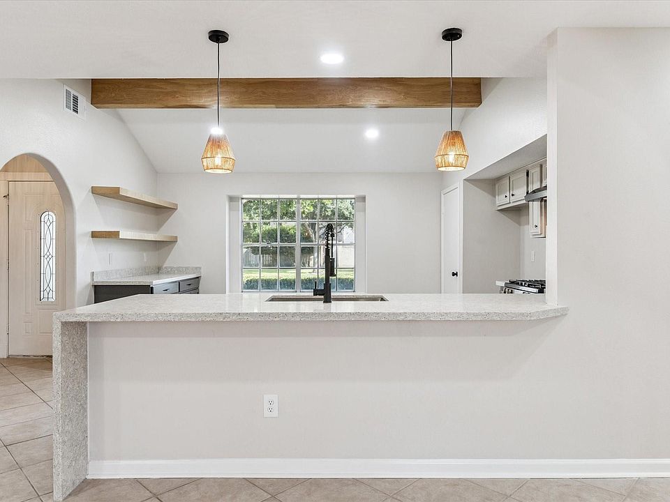 Sparkling poolDesignated coffee barOpen-concept with high ceilingsModern backsplashHuge kitchenRemodeled ensuite bathStunning natural wood accents