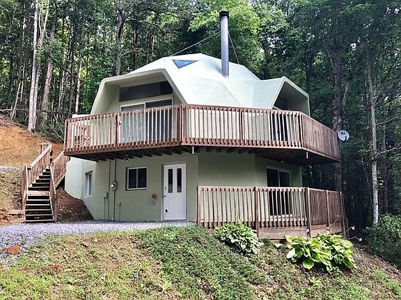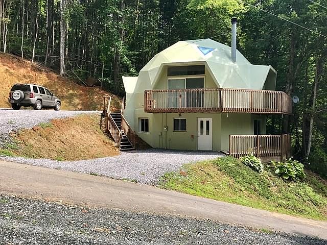 This cement dome house comes with lots of privacy. Save on energy bills, as this home is environmentally friendly. Open concept design, with a beautiful wrap-around-deck. Wood Burning fireplace to help you enjoy the mountain winters. One mile from the Blue Ridge Parkway, thirty minute drive from Marion, Burnsville, and Spruce Pine. Only an hour from Asheville, this home has a great location. Basement has separate one bedroom/one bath apartment with store room which can be converted to another bedroom or office. Must see to fully appreciate what this unique home has to offer.