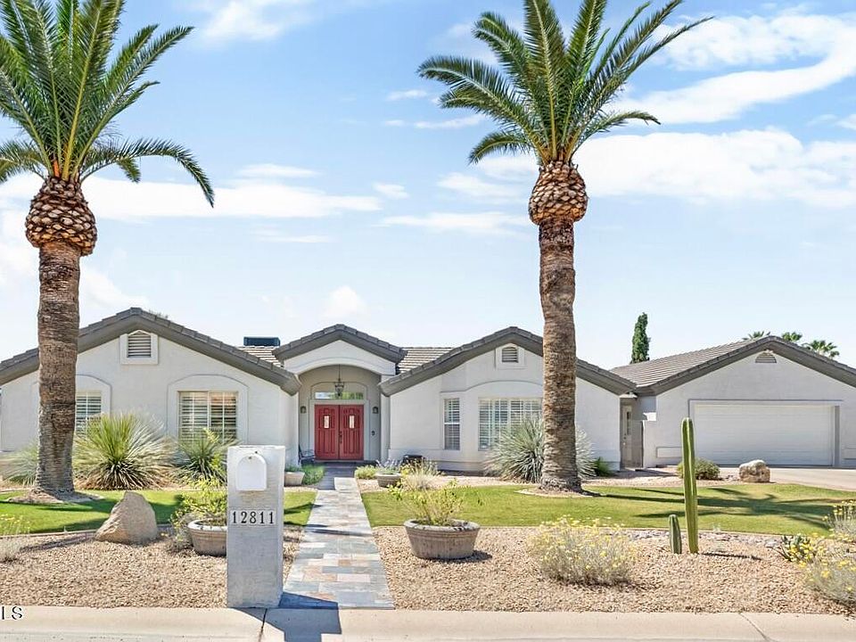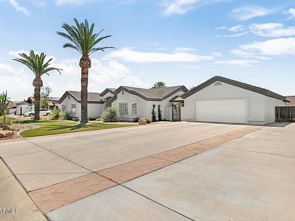 THIS HOUSE HAS IT ALL, NO HOA, with over 1/3 acre lot, lush landscape, real grass, sparkling pool and a large covered patio... it's like having your own little personal resort right in your backyard. DETACHED 4 CAR GARAGE WITH 3/4 BATH AND 320SQ FT ADDITION. There are 3 gates to the backyard, the RV gate has an expansive concrete slab behind it. Main house has 3 bedrooms & 2 baths, with easy conversion for a 4th bedroom, if desired. Enjoy travertine floors throughout and wood floors in bedrooms. Kitchen has granite countertops, a center island w/storage, breakfast nook and white cabinetry. Owners suite has double doors that lead out to your very own patio space and primary bathroom has his/hers closets and a large shower with a jacuzzi tub. Come see it!