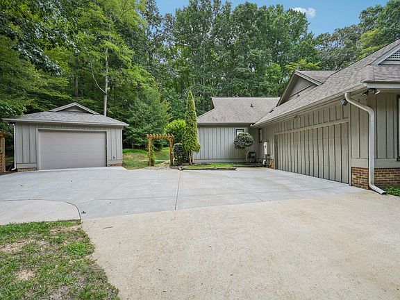 Magnificent Contemporary Ranch on Private 1.79 Acres - Short Walk from Falls Lake! Experience the perfect blend of modern luxury and serene nature in this stunning North Raleigh retreat. Nestled on a beautifully wooded 1.79-acre lot just a short walk from Falls Lake, this contemporary ranch offers peaceful privacy and unbeatable convenience - with shopping, dining, entertainment, and easy highway access all just minutes away. Bright, open layout filled with natural light, soaring cathedral ceilings, and a striking stone fireplace that anchors the spacious family room. The chef's kitchen is both stylish and functional, featuring a skylight, rich cabinetry, granite countertops, a large island, walk-in pantry, and stainless steel appliances—all seamlessly flowing into a sun-filled breakfast nook. Sophisticated formal dining room and wet bar - ideal for gatherings! Work from home with ease in your dedicated office space with double French doors for added privacy. Choose from two luxurious primary suites—each offering its own retreat-like experience. The first boasts a tray ceiling, sunlit bay window, spa-like bath with garden tub and separate shower, and a massive walk-in closet with built-ins. The second primary features direct access to the deck, dual vanities, and two generous closets. A versatile bonus room with built-in bookshelves awaits your imagination—whether as a media room, playroom, home gym, or game room. Two additional guest bedrooms, two full bathrooms, and a spacious laundry room with cabinetry complete the thoughtful floor plan. Car enthusiasts or hobbyists will love the attached 2-car garage plus a detached 1-car garage/workshop. Enjoy the beauty of the natural landscape and wooded setting on your expansive 3-level deck with built-in planters, grilling area, and plenty of space to relax and entertain. Wind down by the oversized firepit or challenge guests to a match on your very own outdoor chess set—a truly unique and fun addition!