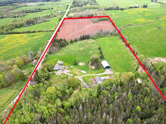 Stunning, Nova Scotia hobby farm on a sheltered acreage minutes from the heart of the Annapolis Valley. 31 pastoral acres offering fenced pasture/paddock, hay, fantastic out buildings, fruit trees, roughly 10 acres of forest with trails, plus a brook at the Western boundary. Private setting, set back from a country road. Set up for horses, small livestock, subsistence farming and much more! Extensive upgrades in recent years have made the property well suited for home based businesses or simply enjoying animals and farming life. The quality and character of this 1869 home shines amid the recent updates. 3 bedrooms, 2 full baths, with the den on the main floor currently used as a 4th bedroom. Open-plan contemporary kitchen/dining room features a generous peninsula, coffee bar, pantry, and charming Elmira wood cook stove. Mudroom and wood shed at the side entry and back utility room with door (& dog door) going directly to the fenced paddock. Two other principal rooms plus full bathroom with laundry on main floor. Upstairs is a large primary bedroom with big closets and views of the Bay, and a luxurious full bath with spa steam shower. Two other bedrooms and an office with Gothic window complete this level. The magnificent barn features a huge workshop, animal stalls, storage attic, upper floor loft designed for entertaining, events or retail (antiques shop or gallery?) Projection TV negotiable. A 2-level roughed in guest quarters is on the North end. The Bay Of Fundy can be seen from the high points of the property. Second smaller barn converted to a 2 story music or art studio (or guest quarters) with bathroom, wood stove, sound proofing and in floor heat. Brite-Span 60'X40' run-in barn with electricity and water is perfect for horses, tack, equipment & vehicle storage. High enough for second level. Poly tunnel greenhouse and water catchment system also on the property. Please request extensive list of features and improvements.