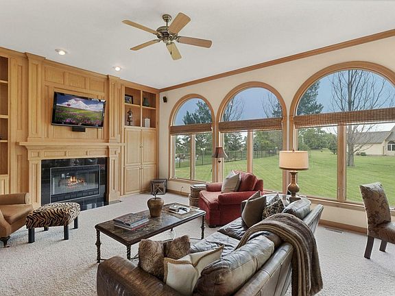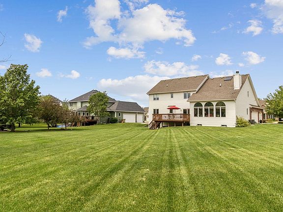 Set on a quiet cul-de-sac, on a large .59 acre lot with a private back yard & view, is this immaculate 5 BR, 4,171SF, 2 story, built by premier builder Accurate Development. The main floor features an office with built-ins, formal dining room, living room, kitchen with maple floors, granite counters & white cabinets, family room with three sunny circle top windows & fireplace, laundry room with sink, plus washer and dryer included and half bath. The second floor has 4 BRs, master BR with his & her closets, master bath with whirlpool, tile shower and two sinks. The daylight basement, has two rec or family rooms, wet bar, 5th BR & 3/4 bath.