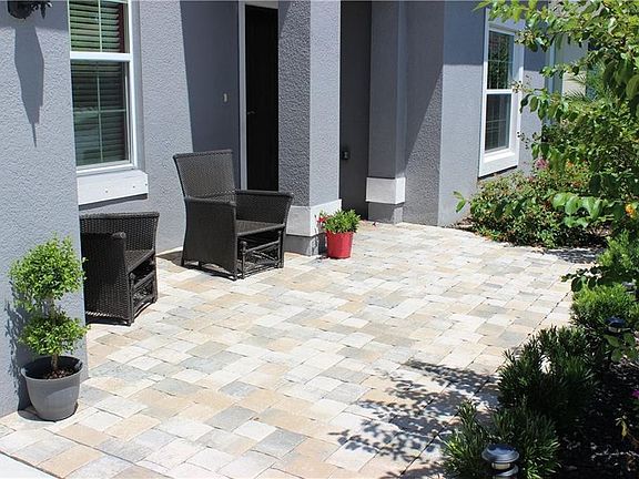 Prepare to be awed by this spacious 4 bedroom 3.5 bath home located on a cul de sac. Notice the extended driveway that allows for plenty parking! The paver front porch has also been extended to allow you to relax & visit with neighbors over a glass of lemonade. The three car garage has been modified to a 10x10 air conditioned storage room! (easily converted back to a 3 car) A bonafide Florida basement y'all! Inside,it gets even better with details like trey ceilings, crown molding, rich hardwood floors in the great room, 24x24 tile in the entry, kitchen & baths, Anderson storm doors allow for natural lighting to escape throughout. This open floor plan offers a wonderfully equipped kitchen with 48 inch cherry wood cabinets, glacier whit e Corian countertops, custom tile & glass backsplash. A massive center island with an oversized breakfast bar for entertaining! Stylish office/den just off the kitchen with french door entry & a separate formal dining area allows you to host the best dinner parties! The second bedroom has it's own private bath & seating area - perfect as an in-law suite! The extended screened paver lanai makes great use of this quaint space with a custom party bar & a hot tub! Enjoy watching the game with friends & family! This lot does not allow room for a pool. However, Greyhawk landing is a resort style community with pools, plenty of activities and recreational facilities -you never need to leave home to live like you're on vacation! com see this meticulously kept home today.
