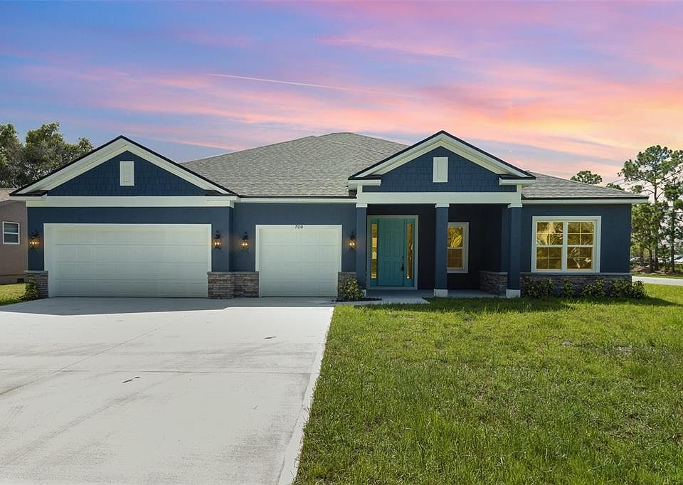 High end luxury meets affordability in this stunning 4-bedroom 3-bathroom 3 car garage home situated on an oversized .38 acre lot close to all things Ocala! Stand out features include Sparking White Quartz countertops, floor to ceiling tile in all the bathrooms, Samsung stainless steel appliances plus washer and dryer, 9'4'' ceiling & 8' doors throughout the entire home, Mohawk Ballard LVP flooring throughout the common areas, and so much more. From the moment you arrive you will notice the oversized driveway with ample parking and tasteful stacked stone accents. Once inside, you will love the open floor plan with the living room, dining room and kitchen all flowing together in perfect harmony. The kitchen features 42'' upper cabinets, walk-in pantry, and an oversized island that is sure be the statement piece of this home. The Master suite is expansive with tray ceiling, dual sink vanity with beauty station, huge walk-in closet, and gorgeous shower. Guest bedrooms are all very well sized with 2 bedrooms sharing a jack and jill bathroom with dual sinks. Indoor utility room with tons of natural light will make laundry your favorite chore. The covered lanai is perfect for grilling or relaxing with family and friends. Schedule your private tour today before it's too late. *Photos are from model home finishes will be different please inquire*