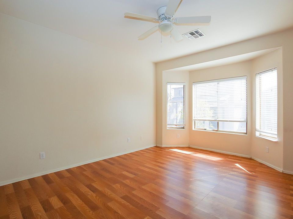 A beautiful 1,669 SF, 3 bedrooms plus 1 bonus room, 2 bath home in excellent Litchfield Park location and great neighborhood. This home has vaulted ceilings for an open feel, in the larger living and kitchen area with a small bar for entertaining guests. The kitchen is also equipped with new refrigerator and oven range. Tiles in common areas. The carpet is almost new. The primary bedroom features a bay window, ceiling fan and walk-in closets. The washing machine and the dryer are new. The air conditioner unit is new as well. This home is in an ideal location close to shopping, dining and entertainment venues. This home is also furnished with a bed in each room, sofa in the living room, dining table and chairs in the kitchen. Tenant is responsible for all utilities. Small pets allowed.