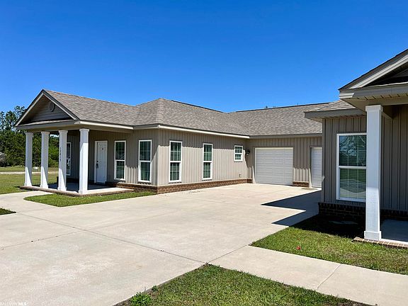 This is a lovely 3 bedroom 2 bath duplex in the Spanish Fort area. The stained concrete floors , granite countertops, and stainless steel appliances are all desirable features that can make a home feel modern and stylish. Ceiling fans and blinds are in all bedrooms. The home has an attached single car garage convenient for parking and storage. The yard boasts a large open area with a covered back porch. Lawn care is included in monthly dues. The primary bathroom has double vanities, tub/shower combo, and a walk-in closet that offers privacy and convenience to the homeowner. Additionally, this property is located in an area with great shopping, and excellent access to I-10, Mobile, and all of Baldwin County. Overall, this duplex has a lot of great features that makes it an attractive option for someone looking for a comfortable and convenient home in Spanish Fort. Home is freshly painted, updated, and move in ready. Looking to invest? The A side of the duplex is also available...you can own the whole building. Contact agent for more information. Interior pictures are of unit A...more pictures of unit B to come soon!