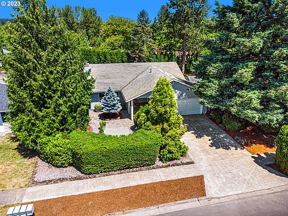 Welcome to this charming Murray Hill single-level home located in the highly sought-after West Beaverton neighborhood! Upon arrival, you'll be immediately drawn to the home's captivating curb appeal. The well-maintained exterior + beautifully landscaped gardens make it a serene oasis! With a covered back porch, covered front porch + garden patio, there are multiple outside destination points for entertaining or enjoying the tranquility of nature! Step inside + be greeted by the inviting interior with vaulted ceilings + large windows that create a light+bright openness. With three bedrooms + two full baths, there is ample space for comfortable living! Fresh paint + new carpet provide tasteful, modern updates with an instant move-in ready feel plus oversized 2-car garage, 2 sheds + AC! Don't miss the opportunity to make this delightful Murray Hill home your own. With its desirable location, charming features + convenient amenities, it truly offers a fantastic place to call home. Walkable to New Seasons + multiple schools and nearby shops, parks, trails + restaurants!