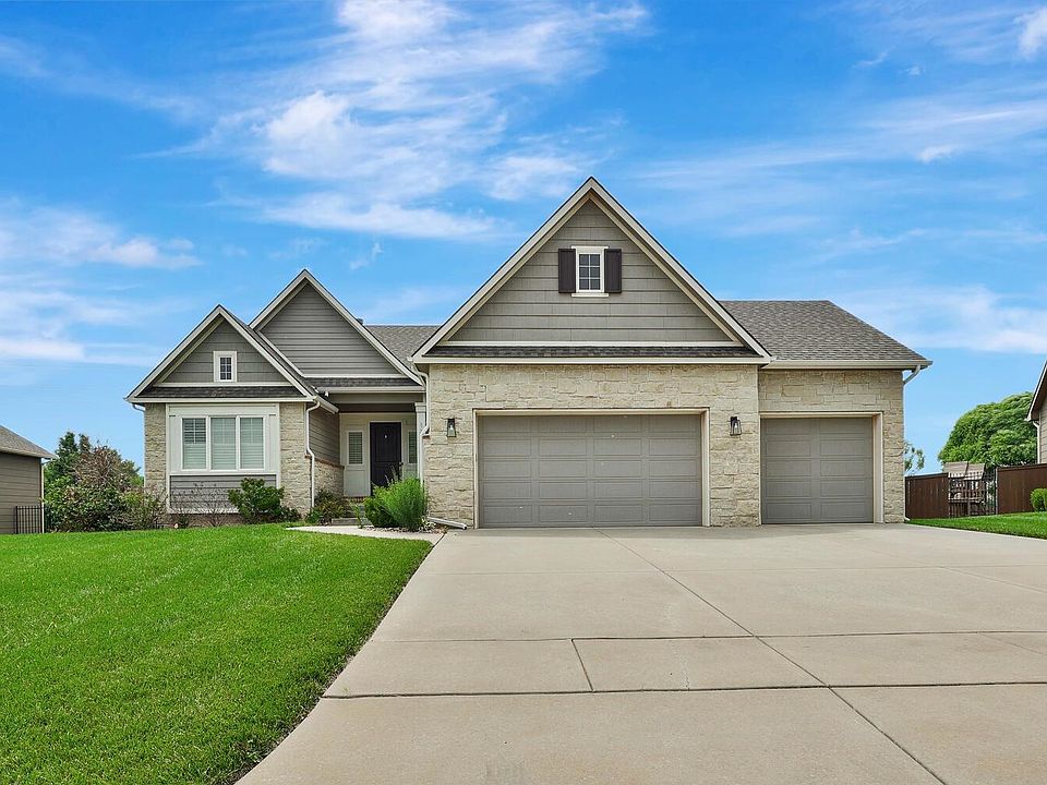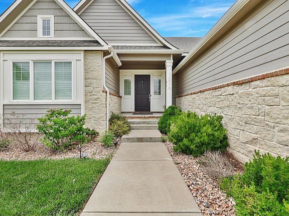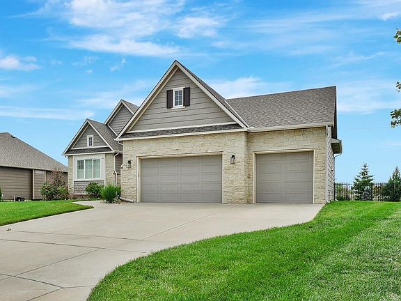 Beautiful home located in Sedgwick county but Andover school district, also not far from Magdalen, Trinity, and Collegiate schools. Upon walking in, you'll notice the large open concept with a family room that features a lovely fireplace, vaulted ceilings, great wood beams and upgraded electronic blinds. The master suite features access to the deck and a bathroom with a large shower with double heads and skylight, along with a great master closet that leads directly to the laundry room. The upstairs is complete with a walk in pantry and a split bedroom floor plan. The basement is an entertainers dream with bar, game area and a second fireplace. Two more bedrooms and a third bath are also in the basement. Outside you'll find a beautifully landscaped front and backyard with an upgraded Rachio controlled sprinkler system.