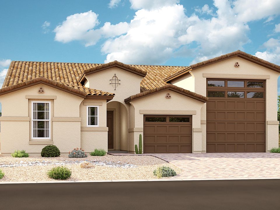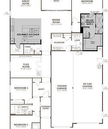 Explore this exceptional Deacon home, ready for quick move-in on a homesite boasting driveway pavers and front yard landscaping. Included features: an inviting covered entry; a versatile flex room; a gourmet kitchen offering 42'' cabinets, quartz countertops, stainless-steel appliances, a double oven, a center island and a walk-in pantry; a spacious great room; an elegant dining room with center-meet doors leading onto a charming covered patio; a lavish primary suite showcasing a generous walk-in closet and a private bath with cultured marble countertops; a convenient laundry; a mudroom; a tandem garage and an RV garage. This home also offers stone tile flooring, additional windows and ceiling fan prewiring in select rooms. Tour today!