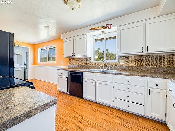 Experience true country living on this property situated on 10 peaceful acres, just 10 miles from town! This 2,200 sq ft home offers 3 bedrooms, 2 full bathrooms, and a large bonus space perfect for a home office, guest room, or additional living area. The primary bedroom suite includes two closets and a spacious bathroom with a jetted tub and a walk-in shower. The living room features a cozy gas fireplace, while the kitchen and dining area feature beautiful wood floors. This home is built to last, with a durable metal roof and energy-efficient double-pane windows. Plus an HVAC system installed in 2021. The mudroom includes a washer and dryer and plenty of storage space. Step outside onto the covered deck, with pasture & mountain views—an ideal spot for morning coffee. The property is set back from the main road and includes two separate pasture areas, perfect for animals. Enjoy the benefits of Gravity Irrigation and a pole barn currently used for hay storage. Two carports for parking and fenced front and backyard areas with three apple trees. LOW County Taxes! Don’t miss the opportunity to own this slice of country paradise!