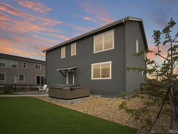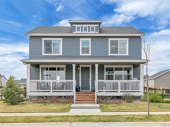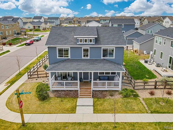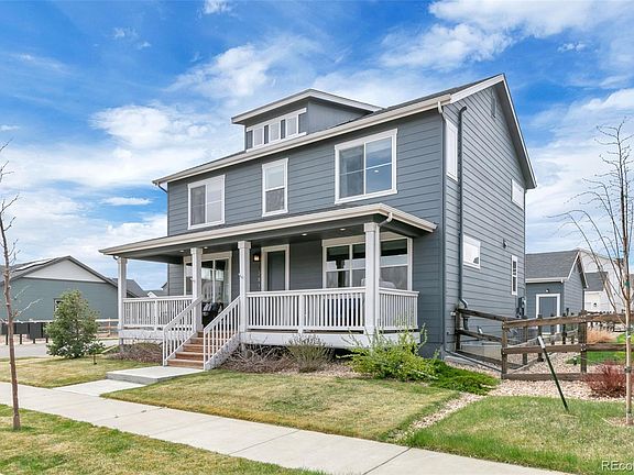 Welcome to the stunning Barefoot Lakes Community, where nature and luxury meet. This corner lot Brookfield home boasts 3,108 sq. ft. of space with 4 bedrooms and 4 bathrooms. As you step inside from your extended wood front porch, you'll be greeted by an open-concept layout featuring engineered wood flooring, an eat-in kitchen, penny tile backslash, custom hardware, Quartz countertops throughout and a beautifully railed stairway, leading up into your airy loft with soaring vaulted ceilings and mountain views. Your Primary Suite exudes elegance and sophistication; the double vanity, his and her walk-in closets and blackout drapes are just the beginning of the lavish features that await you in this exquisite space. The finished basement greets you, with stamped concrete window wells for a touch of elegance and a a large flex room, ideal for movie nights or hosting guests with an additional bedroom and bathroom.