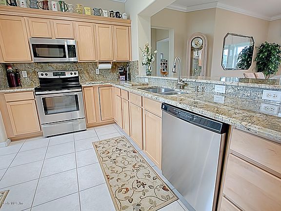 Great golf course views from this CBS Sanibel.2 bedrooms with a den, split floor plan and features that everyone looks for. This fine home is occupied by the original owners who live here 6 months and a day, not had lots of usage and it shows. The kitchen has maple cabinets with double rollouts, granite counters and granite backsplash and all recent stainless steel appliances. Master bedroom has an extended built out closet and shower Tile is everywhere except the bedrooms. A/C system was new in 2017, and the enclosed lanai with acrylic windows has full heat and air. Double layers of insulation make the utility bills much lower. The garage has been truly lengthened, and the golf cart garage is 21 feet long. The landscaping is gorgeous and this fine home also has an irrigation well.