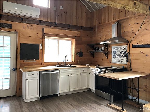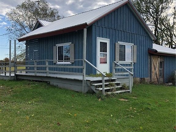 A Rustic Diamond is for sale in Henderson. Originally a log cabin, this farmhouse has been completely updated while retaining its historic integrity. Two bedrooms on the first floor, the master bedroom has a modern bathroom and a deck to watch the abundant wildlife. The second bedroom was the original log cabin that has been updated with electric outlets and walls/ceiling completely insulated. A country kitchen is complete with gas range, range hood, dishwasher, and refrigerator. A freestanding cabinet can be used for pantry supplies. Some original wood floors remain along with some vinyl plank flooring. The steel roof was completed seven years ago along with R45 insulation in the ceiling and R42 insulation in the walls. A first floor laundry is complete with a washer and dryer, a whirlpool tub, modern shower, sink, and toilet. There is a freestanding propane fireplace in the cozy living room and mini split adds year round comfort. An open loft with original floor boards and exposed hand hewn beams offers additional possibilities for bedroom, storage, or game room. A back room could be used for storage, pantry, or work shop. There is a hand dug well in the cellar and a sump pump. Exterior features include a rain water reclamation system with storage tanks that could also be filled via a water delivery service. The detached garage ha 100 amp electric service with a single car bay, a potting shed, and an additional storage area, hence a "He Shed, a She Shed, and an animal shed"! The 0.9 acre lot has mature trees and a large open area for a garden, a gazebo, a fire pit, or whatever the new owners can dream of.