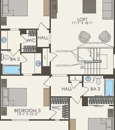This is the spacious "Oxford" floor plan at the new home community the Manors at Highland Grove in Riverside. The Oxford Plan has the Owner's Suite, secondary bedroom and a flex room on the main level with three additional bedrooms and a loft upstairs. Please note, the photography uploaded is of a rendering showing our Oxford floor plan. Photos uploaded are of the model representing the floor plan and are to demonstrate furniture layout. Furniture pictured is for demonstration only and not included with purchase.