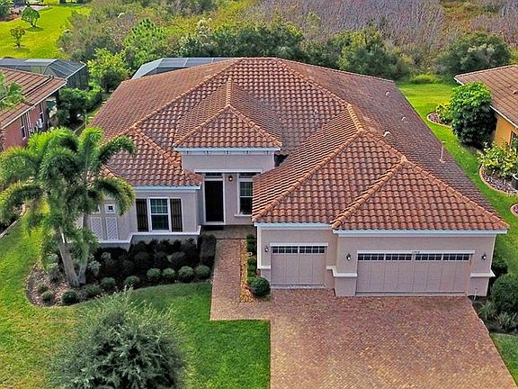 Welcome Home! There's no need to go through the stress of a new build when this gorgeous 2010-built DR Horton Osprey plan is available immediately. The wide-open 3067sf, single-story split 4/3/den plan has the perfect amount of space for your every need and is loaded with must-have features, some of which are recent upgrades: Large quarry tile in all the main living areas; designer ceiling fans throughout; upgraded wood-look tile in the den; crown molding, dining room chair rail and accents; The wide-open Chef's Kitchen features vast platinum-level granite counters with center island, 42" wood cabinets, a beautiful tile back-splash, gas stainless appliances and a spacious walk-in pantry. The roomy Owners' Suite enjoys private lanai access, two large closets, and a luxurious bathroom with walk-in shower, garden tub, dual sinks and private commode. All bathrooms have granite counters on wood cabinetry with upgraded listello tile in the showers. With enough covered space to fashion another living room, you may decide to spend all your time enjoying the private, south-facing screened lanai with its nearly-new heated saltwater pool and spa, complete with natural gas hook-up, outdoor shower and serene preserve view. All of this in a supremely private section of sought-after GreyHawk Landing which features miles of walking trails, athletic facilities, fishing pier, 2 community pools, a water park, playgrounds, and much more! Offered with 1-yr buyer warranty!