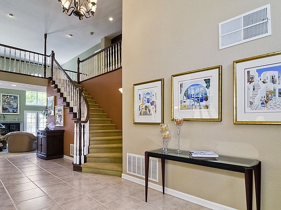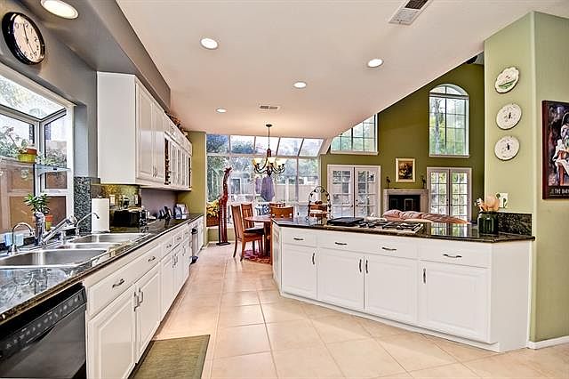Price Reduced! Quiet serenity and privacy abound in this beautiful Sonoma "Sausalito" Plan 2 pool home. Located on a highly desirable double cul-de-sac, this lovely four bedroom, three and one half bath home provides high ceilings and a spacious floor plan. As you enter the home, the tiled entry leads past the formal living and dining rooms, the dramatic stairway, to the light filled, two story family room anchored by the inviting fireplace and adjacent the dining nook and beautifully upgraded kitchen complete with slab granite counters, rich cherry-finished cabinets, stainless appliances, and a built-in desk/buffet with custom glass fronted cabinets. The grand two story master bedroom is ideally located on the main level opposite the family room and includes a wine closet and second floor retreat with fireplace. The spectacular master bath and closets have been entirely rebuilt and finished with high end materials including slab granite counters, custom cabinetry, travertine double shower with extra jets, 3/4" frameless glass, and soaking jacuzzi tub. Three generously sized secondary bedrooms, one of which is en suite, all including plantation shutters, grace the remaining upstairs spaces. The back yard is an entertainer's dream and includes the remote controlled salt water pool and spa, built-in BBQ, and outdoor fire ring. Front and rear landscape is finished with low water, low maintenance plantings and mature trees providing privacy and shade. Hardscape is beautifully done with flag stone at front entry and courtyard, rear yard, and pool deck. Additional features include remote controlled window coverings on high windows in family room and master bedroom, solar electric panels, thermal pool heat, dual zone heat & A/C, and three car garage.