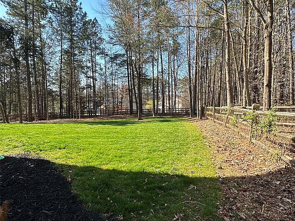 Gorgeous 2 story home in desirable Bradfield Farms community featuring a recently painted neutral interior with new flooring on main level, updated carpet on second level. Updated lighting, new vanity in half bath. Home offers a relaxing covered front porch, fenced rear yard backing to a wooded view. The 2 story foyer flows nicely to the spacious family room & kitchen which is flooded with natural light from abundant windows including gas logs that are great for those cool winter nights. Abundant cabinetry in the kitchen, stainless fridge, recently replaced dishwasher & new microwave creates an inviting space to enjoy the spacious breakfast area. A half bath w large laundry room complete the main level. Upstairs offers 3 brs, 2 bths, a large loft area great for play area or tv entertaining space. The primary bedroom is large with vaulted ceilings, spacious bath, double sinks. Walk in closet provides abundant storage. The rear yard is spacious & fenced backing up to a wooded area.