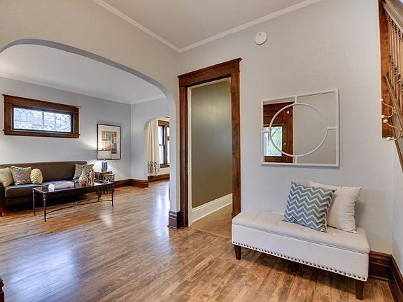 Excellent Hamline Midway home on corner lot with updates throughout! Four bedrooms, two bathrooms, open main floor layout, outstanding kitchen remodel with ample counter & cabinet space, solid surface counter tops, center island w/ breakfast bar; beautiful hardwood floors upstairs & down, lower level family room with separate bathroom & bedroom, front porch overlooks a playground, fully fenced backyard, poker room off the garage, convenient location w/ walkability to light rail and Groundswell., Directions Snelling to University - East to Hamline - North 2 blocks to Charles - East to home.