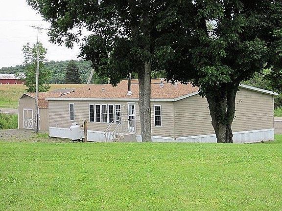 Very well maintained 1999 Champion 56' by 28 ' Manufactured Home on a 2.04 Acre Country Lot. Beautiful , stream fed pond with 16 feet of depth at the deep end, suitable for swimming, fishing & sunbathing. Home features, 4 bedrooms, 2 full baths & fully applianced, large eat-in kitchen. Keystoker Rice Coal Stove is supplemental heat and the heat expense is less than $1000.00 per year. The home also has a 4 year old, High Efficiency Propane Furnace. For a bonus, there is a 24' by 30' Detached Garage/Shop with a poured concrete floor, 100 Amp electric and a functioning propane furnace. In addition, there is another 14' by 24' Storage Shed with a Wooden Floor. 270 Feet of Road Frontage. Lot nicely landscaped. Home reflects pride of ownership inside and out.