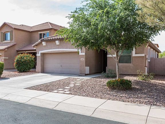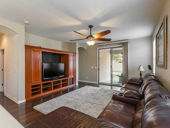 Great one-owner starter home with 3 bedrooms & 2 baths in 1343 SqFt. Great room floor plan with split bedrooms. The nicely upgraded eat-in kitchen features darker maple cabinetry with stainless hardware, granite countertops, & stainless appliances. The great room has wood laminate flooring, built-in cabinetry and sliding doors that lead to the covered patio and grass backyard. The master bedroom has a private bath with tub/shower combo, extended vanity & walk-in closet. Other features include a 2 car garage with epoxy floors, front security door, water softener, & a great location-walking distance to a common area & playground! See today!