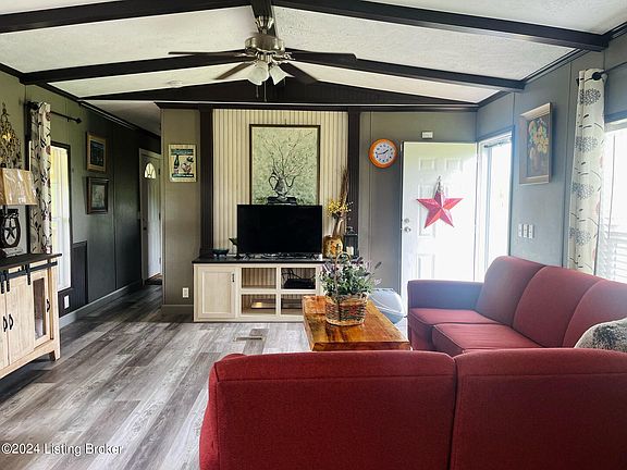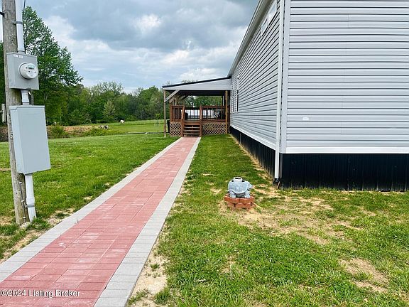 Welcome to Hudson, KY. A magical place!! This elegant well-maintained home has a farmhouse aesthetic that is absolutely beautiful! Nestled in the scenic village of Hudson (Breckinridge County). The peaceful pond and scenic views make this property enchanting. You can enjoy these views on the newly covered deck! Complete with young pear and apple trees. Home possesses 3-bedrooms, 2-full baths. Spacious kitchen and living area create an open concept. The home boasts many updates and additions inside and out! From the new laminate flooring to the new underground water drainage system - rain water drains into the pond. There is also a newly constructed Amish crafted barn with 120 Amp electric, lighting, and insulation along with an animal shelter built in 2023. You don't want to miss out on this one. Call Today!!!