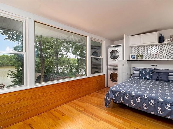 CUTEST. LAKEHOUSE. EVER. This 1 BR/1 BA charmer is waiting to be your lake escape! Single Bedroom contains full bath with tiled shower & large linen cabinet. Cabinetry in sunroom opens up to reveal a MURPHY BED that remains, this home can sleep 4 people comfortably...add your own sleeper sofa in the LR to make it 6! Updated appliances that remain in the kitchen with tile backsplash and pantry. Stackable washer & dryer to remain with acceptable offer. Tiered deck & pier out to beautiful HIGH ROCK lake.