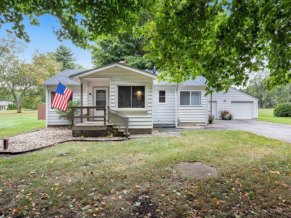 LARGE PEACEFUL LOT WITH MATURE TREES! Move right in to this adorable maintenance free picture perfect ranch. Sellers have prepped this home for new owners to be worry free. Don't let this cozy size deter you, the open concept kitchen, dining, and living rooms are great for entertaining. Roof, furnace, AC, water heater, and sump pump are all new. There is NEW flooring throughout, the interior has been freshly painted, and all new pex water lines ran. You will LOVE the HGTV worthy stylish bath remodel, it's amazing. The enclosed porch/mud room has so many possibilities as does the full unfinished basement area. BONUS: it's DRY! Home sits on a serene lot that is just under an acre. The large 2-car garage has an attached workshop with a separate entrance and there is plenty of parking area. If you love to entertain or watch the wildlife, the rear deck with privacy fence will be perfect for you. Did I mention the wonderful location and low taxes? Schedule your showing today!
