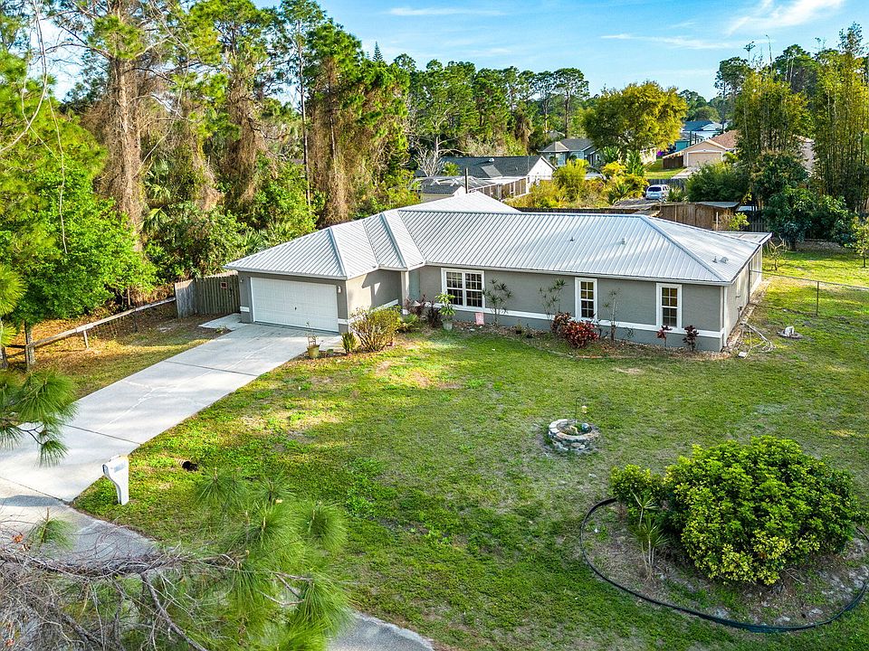 Welcome to your Palm Bay oasis! This charming 3-bed, 2-bath home on a spacious 1/2 acre fenced lot offers privacy and tranquility. Explore the garden deck with handy garden boxes and a shed for extra storage. Inside, find fresh paint in soothing earth tones. This versatile layout includes 3 bedrooms plus an office. For added convenience, enjoy features like a new water system, sprinkler system, and new hot water heater. Plus, there's an A/C sanitizer system to keep your home fresh. The dishwasher is just 2 years old! For added security, alarm equipment is included. Let your guest bring their RV and hookup to the onsite water and electric available for their enjoyment. Enjoy indoor laundry and the durability of a metal roof. Furniture is included, making this the perfect turnkey retreat!