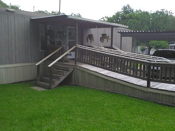 REDUCED IN PRICE 2010 Oak Creek. 14x76. 3 bedroom, 2 baths with carport and front/back deck with wheelchair ramp located on front deck. Home is located in Senior 55 plus Inverness Mobile Home Park. Bedrooms have carpet. Vinyl flooring throughout rest of the home. Two year old smooth top stove. Four year old, 23 cubit feet stainless steel french door fridge. Composition roof. Hot water heater is one year old and has a lifetime warranty. Central air and heat. Built-in microwave with exhaust fan located above stove. Dishwasher. Outdoor shed 8x12 with electricity. Buyer financing only. Call Wallace at 972-743-0390 or 936-238-3995.