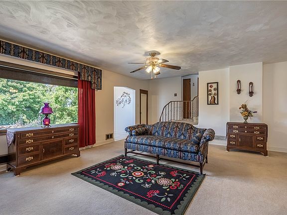 WELCOME HOME. Your 5262 SQ FT HOME is locally known as "THE CASTLE" with a PANORAMIC spectacular VIEW of PA, OH and WV in your ALL SEASON ROOM filled with FLOOR to CEILING WINDOWS! Imagine watching the storms roll in and multiple fireworks displays. With 6 BEDROOMS and 4 1/2 baths there's plenty of room, for an exercise room, office, playroom, etc ... You can even entertain 1 FLOOR LIVING. Enjoy fabulous SIT DOWN DINNERS in your LARGE DINING ROOM with a kitchen to match. 9 foot ceilings and truly spacious rooms. Entertain in your DEN, on a lower level. Dry Bar is yours. Further on down is a 36*18 carpeted GREAT ROOM. Use as a GAME ROOM with pool table, video game set up, arcade games, etc ... or your own THEATRE ROOM. Your 4.3 ACRE spectacular ESTATE includes a 10-foot deep INDOOR POOL with a DIVING BOARD, a SAUNA, DRESSING ROOMS, and full bath in that area. Use the TENNIS COURTS for tennis, bike riding, deck hockey, etc ... Play in the dark with OUTDOOR LIGHTS. Imagine the fun!