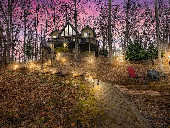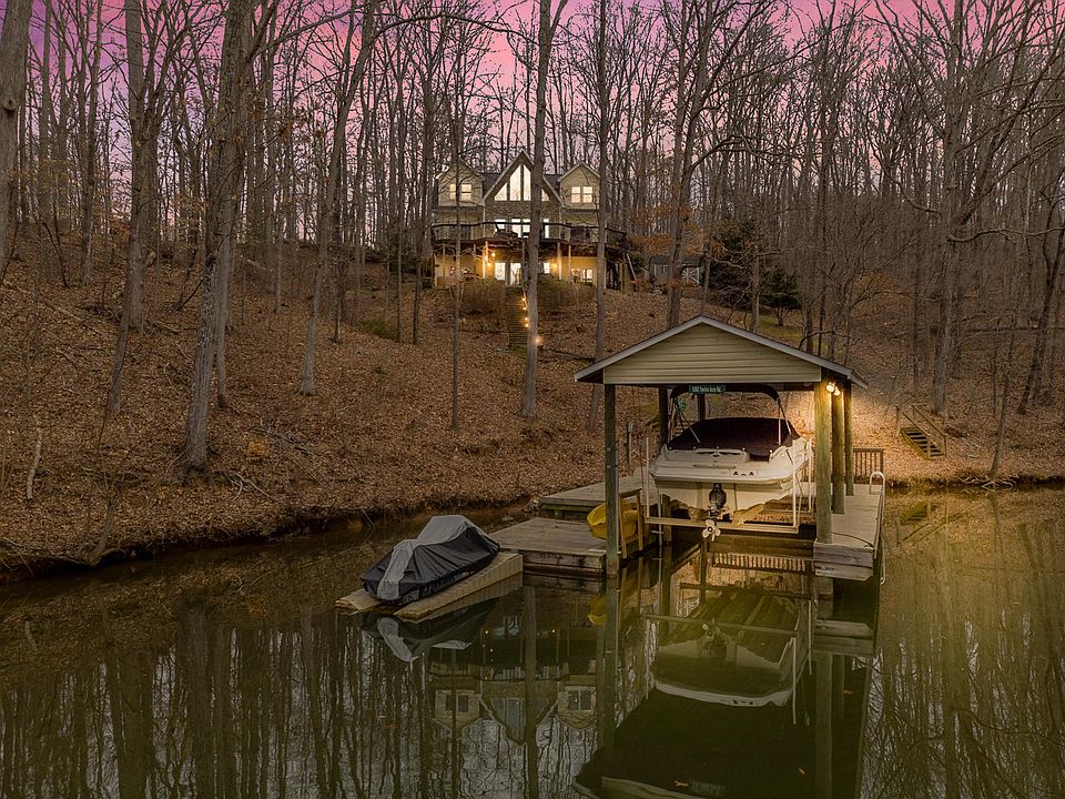 Truly a showplace! Cape Cod style lakefront home features 3 BR, 3.5 BA, & 3,200 Sq. FT. Nestled in a park-like setting, meticulously maintained, & fully equipped for entertaining inside & out. Home offers gracious living, open floor plan that is warm, comfortable, & reflects the ultimate in lake living. Entry level features stunning lake views from the moment you enter the home w/soaring walls of windows, beautiful hardwood floors, living room w/gas FP, spacious master suite, kitchen w/SS appliances, eat-in kitchen, & guest BA. Upper level-2 BR, full BA . Lower level designed for entertaining. Open floor plan, family room w/ stacked stone FP, game room, entertainment room, kitchen, lovely wet, full BA, & laundry room. Nice dock, 211 ft of deep water, jet ski port, fire pit, & hot tub.