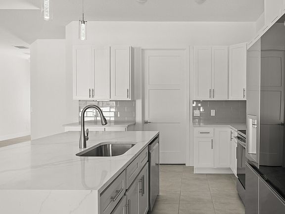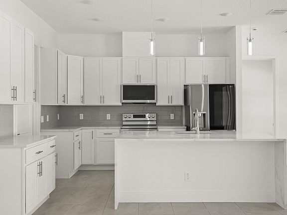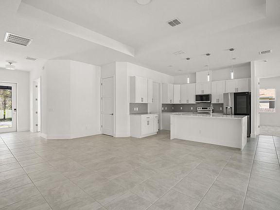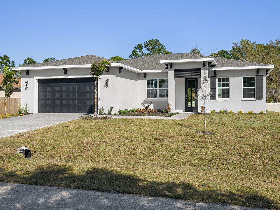 $10,000 towards closing costs. This home is scheduled to be complete 5/15/24! Construction has started. Nice quite road with newer homes. There are many upgrades in the house, granite, waterfall edge quartz tops in the kitchen, kitchen tile backsplash, vented range, tile floors, wall tile, garage extension, 8' garage door, tray ceilings, oversized kitchen island, upgraded carpet and padding. This delightful home offers the ideal blend of contemporary design, convenient location, and spaciousness, making it an excellent choice for those looking for a new place to call home in Palm Bay, Florida. New vinyl fence along rear. Vacant lots in front, behind and to the right of home. Photos are of almost identical home recently built!