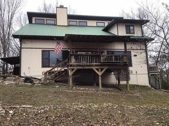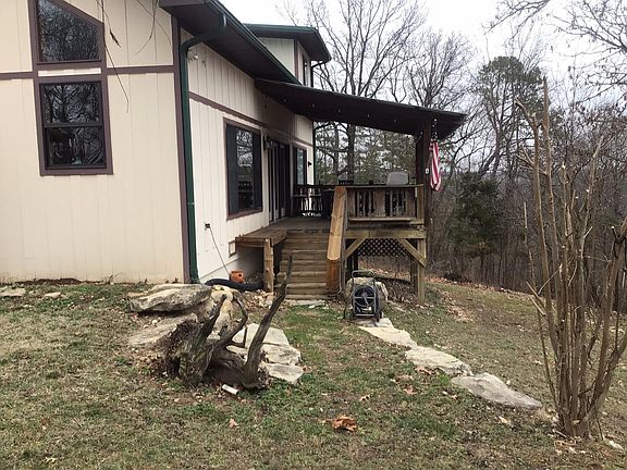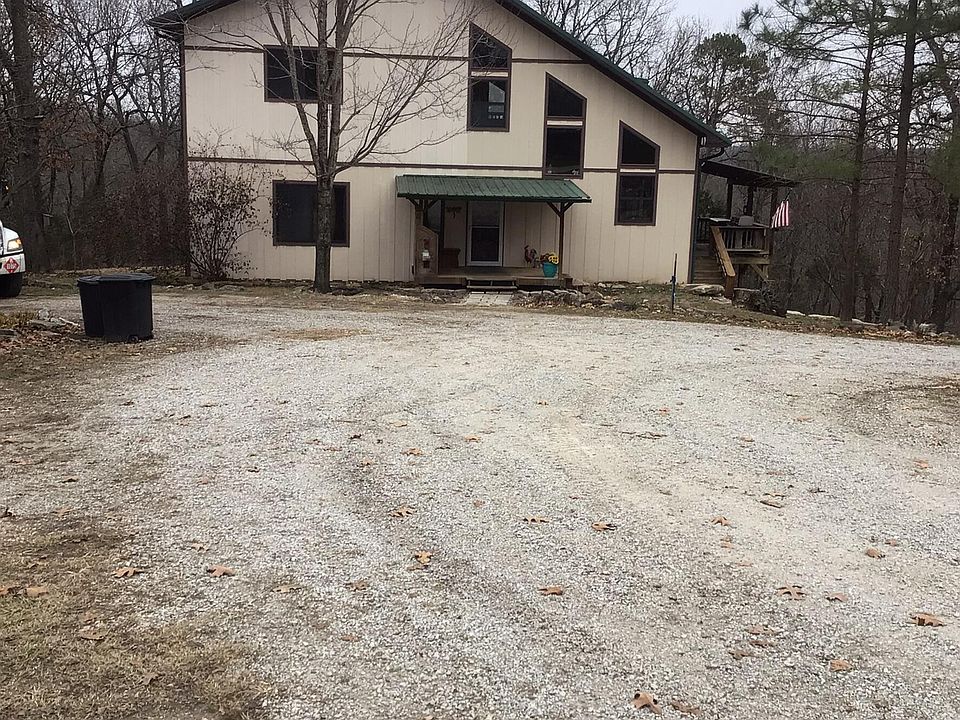 Unique 3 Bedroom 2 1/2 Bath Home located near the Crickett area of Bull Shoals Lake. This home sets at the end of the road with plenty of privacy. A 5 minute drive from the boat dock, 15 minutes Branson. Features 2 deck one covered and the other with a hot tub that goes with the property, A double shower in the master bath, Could be used as a vacation rental that would sleep 12, A detached carport, also a shop building. Big bedrooms with plenty of room for all your furniture, large closets, a setting area upstairs. A lovely snack bar highlights the kitchen with a gas range. Circle Drive and a fire pi off the deck. Enjoy the quite and wildlife in your new home Washer and dryer remain with home.