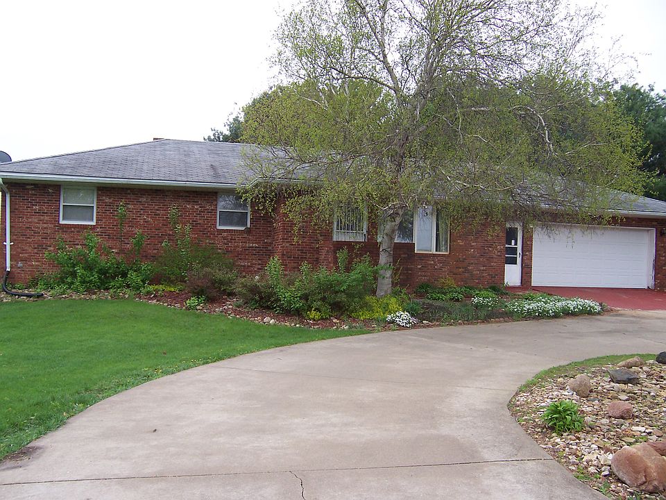 This Quality Custom built brick ranch sits on a hard surface road just outside of city limits. A quiet tranquil neighborhood has the feel of country but just on the edge of town. Golfer lovers can drive their golf cart the short distance to the golf course! The 1389 sq. ft. ranch host 3 bedrooms and 2 1/2 baths ample space for a family. The dining room is adjacent to the kitchen and living room. A hallway takes you to the master bedroom with 3/4 bath, 2 bedrooms and guest bath. There is a first floor laundry with stool which is accessible from the garage. The basement is an open canvas with new drywall installed and painted in Feb. 2016. There is plenty of room for a family room , ultimate lounging area or Man Cave for your guy. The furnace was brand new in 2006, new water heater 1 year ago. There is a high end water conditioning system installed. A 2 stalled attached garage means you stay warm in the winter, no going outside to start the car in the cold. A 16 x 24 (99) detached finished 1 car garage in the back yard is perfect for a shop, storage or project area. The home was built on an angle to avoid the north winds. The owner planted a nice selection of florals which will bring the outdoors to life in the spring. Driveway is gravel with a concrete circle drive at the house. Call today to set up your private showing. Seller will consider paying a portion of buyers closing cost or give buyer credit for any remodel/updating projects. This is being offered to buyers that make an offer on for before June 30 , 2016
