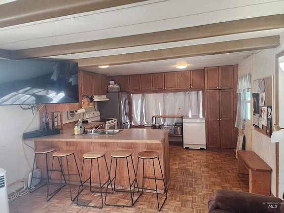 1/2 Acre with room for many possibilities. The original 14x52 single wide was built in 1975 with a 12x40 addition built in 1998 on to the home. 24x32 3 car garage built in 1991 with 200 amp service with new garage door. Concrete is plumbed & stubbed off for sewer pipe in floor for a possible septic hookup. Wood stove to work in the winter in garage. The perimeter of the property is all fenced with a small chicken shed and extra structure for wood and storage. Lots of grapes around the perimeter. If you look out the kitchen window you will have a view of the Owyhees. Cement parking from the road to the garage. Park on the cement to show home.