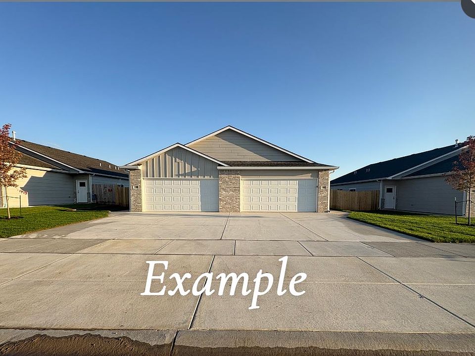 Brand NEW Duplex available for DEC 15, 2025 completion. Popular residential location in southeast Wichita close to many conveniences with low expenses and good rental rates in this functional floor plan with three bedrooms, two full bathrooms, OPEN kitchen, dining and living space. LVP flooring and 9 foot/vaulted ceilings, granite countertops in the kitchen and bathrooms. Sliding glass door to exterior patio and full, rod-iron fenced backyard. Attention to detail is noticed with upgraded craftsmanship inside and out. Call for showing details. Taxes are lowest in this area of Wichita with .113 mil levy General taxes are not fully assessed yet estimated to be $4100 annually specials are low for a new area at estimated $220/ month once assessed HOA fee $250 yearly $250
